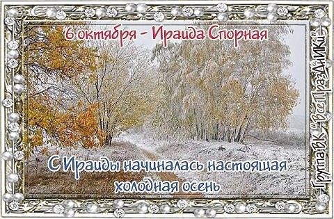 Другие названия: Арина; Арина – журавлиный лет (отлет журавлей); Аринин день; Ирина; первое зазимье; истопница овинная, плакунья журавлиная Церковное название: Мученицы Ариадны Промисской и Ирины Египетской Значение: Почтение памяти двух святых – АриаПодробнее