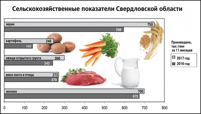 Свердловская область вошла в тройку лидеров Российской Федерации по ежемесячному приросту объемов молока. С начала года в регионе было произведено 606,6 тысячи тонн полезного продукта, что на 6,1 процента больше показателя 2016 года. Ежемесячно прирост объемов молока в сельскохозяйственных организациях составлял более 5 процентов. Это один из лучших показателей в России. Растут и надои: в нынешнем году впервые в истории Свердловской области среднесуточный надой молока на одну фуражную корову превысил рубеж в