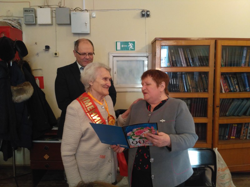 Во время работы общественной приемной газеты «Пенсионер» состоялось чествование Нины Павловны Наумовой (на фото слева), которой исполнилось 90 лет. Председатель городского совета ветеранов Л. В. Якова (на фото справа) и главный редактор газеты «Пенсионер» Н. Д.Березнякова вручили юбиляру подарок, а глава городского округа И. Н. Бусахин преподнес роскошный букет.