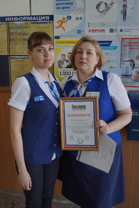 Всю жизнь на почте трудится наша сегодняшняя главная героиня - победитель специального конкурса «Пенсионера», ставшая обладательницей путевки в санаторий. Ольга Юрьевна Родикова с 19 лет трудится на почте и заслужено оказалась лучшей в Свердловской области по распространению газеты «Пенсионер». Ее «почтовый» стаж - более 30 лет, профессиональный рост - от оператора связи до начальника центрального почтового отделения рабочего посёлка Пышма. Что и говорить, профессия непростая: много документации, материальная ответственность, да и физически порой приходится нелегко. Поэтому особо ценны сотрудники, которые долгие годы остаются верными избранному пути. Общаясь с Ольгой Юрьевной, мы узнали, что её мама - давний читатель и поклонник газеты «Пенсионер». И сама наша героиня часто перелистывает страницы издания. Правильно, если хочешь добиться отличного результата, надо знать, с чем ты работаешь!
