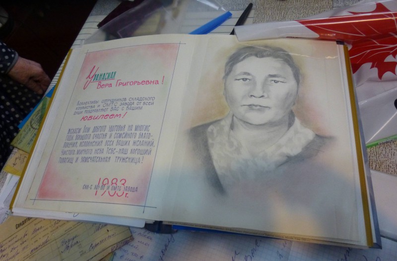 Коллеги-заводчане написали поздравление с юбилеем, восхитились трудовыми заслугами Веры Григорьевны, нарисовали ее портрет.