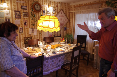 …В центре крохотного городка Боровска, что в Калужской области, есть приметный купеческий дом. В его просторной столовой, освещенной мягким светом абажура, накрыт стол: он богато сервирован и буквально уставлен яствами. И хотя это муляжи, выглядит все убедительно. Обитые штофными обоями стены украшены фотопортретами степенных купцов. Кажется, прямо сейчас комната заполнится людьми - войдет семья и, зашумев стульями, усядется за обед. Во главе стола - чинный отец семейства, рядом его супруга, одним взглядом утихомиривающая многочисленных детей. Прочитав молитву, приступают к трапезе…