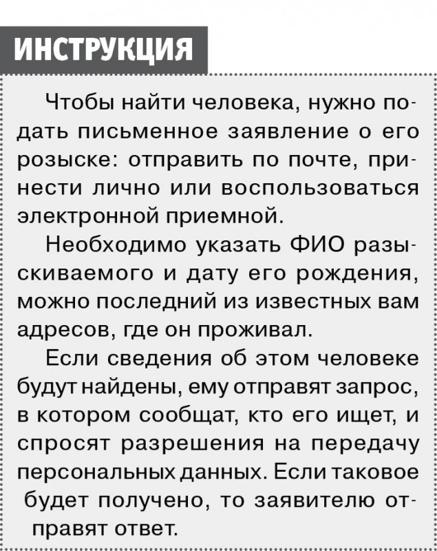- Полных тезок немало, это осложняет поиск, - говорит Анатолий Петрович. – Поэтому при розыске человека важно указать как можно больше сведений о нем – дату рождения, прежнее место жительства.