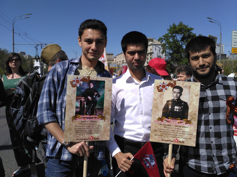 Советская армия, которая сражалась с фашизмом, была многонациональной – думаю, именно поэтому она и одолела силу, заточенную на ненависть ко всем народам, кроме собственного. И «Бессмертный полк», что вполне естественно, тоже многонационален, причем он сохраняет этот свой характер несмотря на политические распри, которые бушуют в мире.