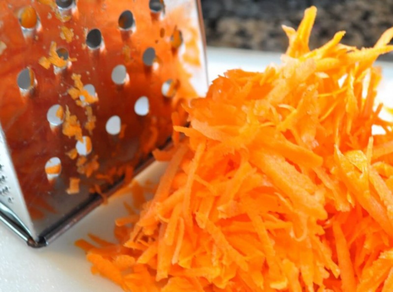Потереть на тёрке. Бета-каротин эффективнее усваивается из измельчённых вареных овощей. Так что лучше нарезать её в салат, потушить с маслом или добавить в суп.