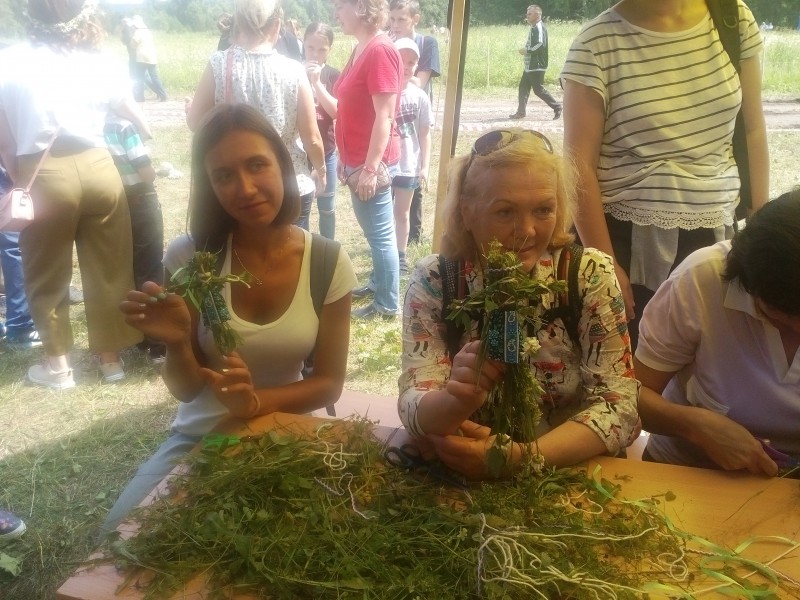 Елена провожает нас к другим наставникам. Женщины учат гостей турнира делать куколок из травы - таких, какими в прошлые века развлекали себя дети, пока родители были заняты в поле.