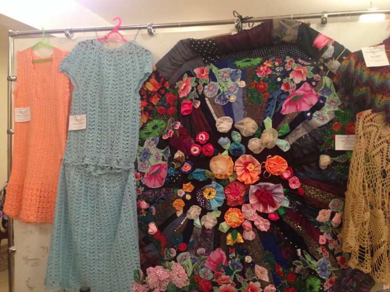 Всегда до начала основного мероприятия в фойе дворцов проходят выставки народно-прикладного творчества. Пенсионеры на суд зрителей и жюри представляют оригинальные изделия: здесь и одежда, связанная крючком, и картины, расшитые крестиком, и поделки в технике декупаж, и текстильные куклы, и разнообразные сувениры. В Ирбите, например, внимание привлек стол с берестяными изделиями – на здешней выставке он один такой. Светлана Вениаминовна Пономарева из деревни Пелевина Байкаловского района лишь год назад увлеклась созданием украшений из бересты. На творчество женщину подвигло рождение внучки Василисы.