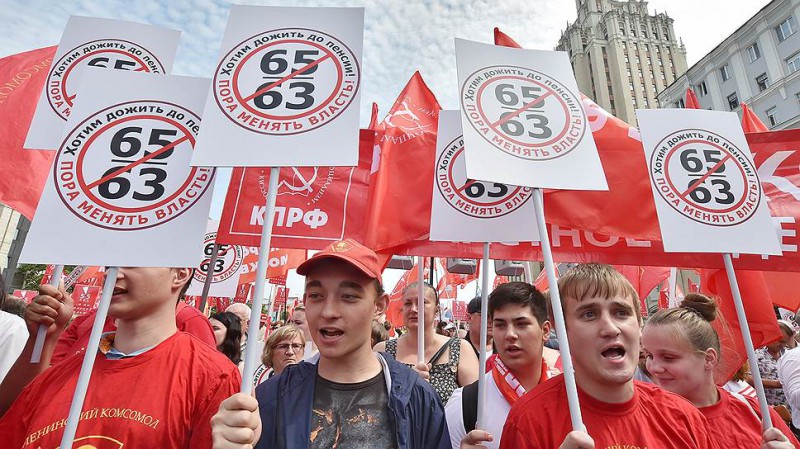 Лидер КПРФ Геннадий Зюганов заявил, что «в России три великих беды, которые коснулись всех семей: Великая Отечественная война, приватизация и теперь — это повышение пенсионного возраста». Беспартийный кандидат в мэры Москвы от Компартии Вадим Кумин попросил проспект проголосовать за него: