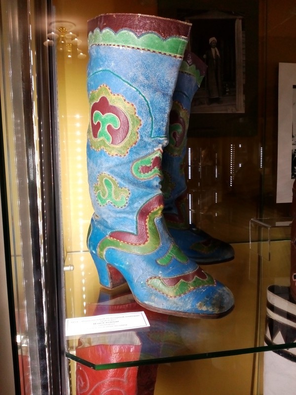 Отдельная группа экспонатов – пестрые, веселые сапожки – обувь татар и башкир. Первые украшали обувь кожаной мозаикой, вторые – вышивкой. Что интересно, многие цветастые пары очень походят на обувь современных модниц. А ведь большинству экспонатов больше 100 лет!