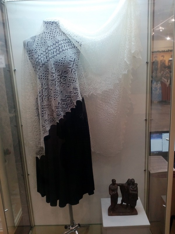 Если в центре изделия оказывается негеометрическая или асимметричная картинка, то перед вами может быть и подделка, и подлинный платок машинной вязки. На выставке оренбургского платка есть такие изделия, например, с изображением Богородицы в середине.