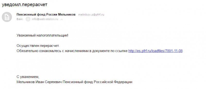 Ниже приводится пример подобного письма «от Пенсионного фонда».