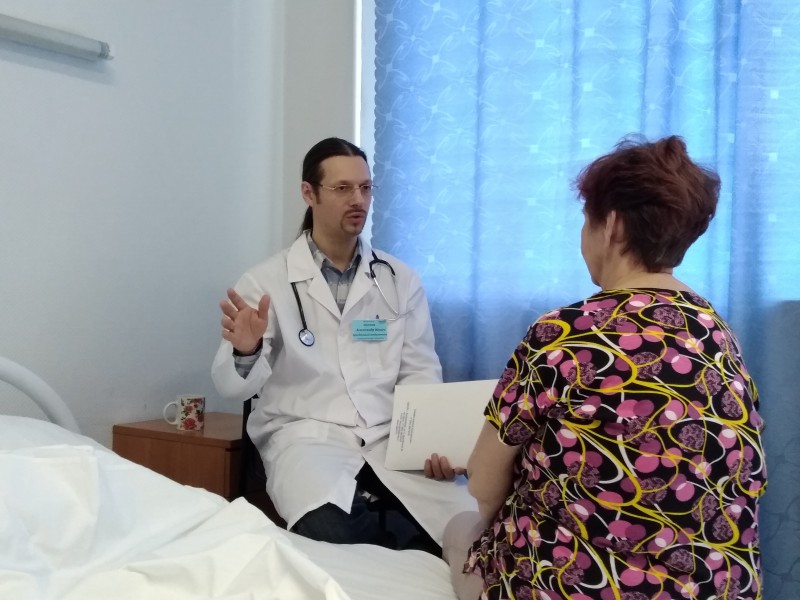 – Находиться здесь могут люди, которым 60 и более лет, у которых есть признаки старческой астении, – рассказывает заведующий Александр Ильич Шустов. – Если оценить эти симптомы на самом примитивном уровне, то они говорят о снижении самостоятельности пожилого человека. Это состояние гериатры должны «поймать» на этапе возможного возврата человека к активной жизни. Но нужно помнить, что наше участие в здоровье пожилого человека ниже, чем его собственное. Гериатрическое отделение – это не столько лечение человека, сколько возможность обследовать пациента с разных сторон. Это в кардиологии или пульмонологии будут лечить «узкие», конкретные заболевания. У нас – комплексный подход, который позволяет комбинировать разные направления. Мы даем рекомендации, как убрать симптом или снизить его выраженность. Но работать над этим пациенту предстоит самому – упорно, поставив четкую и вполне достижимую цель.