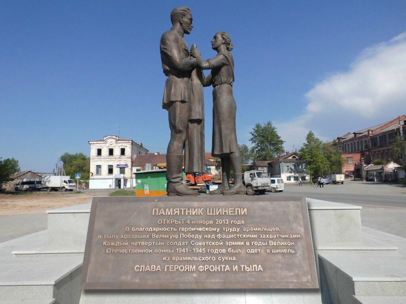 А «Пенсионер» впервые сообщил о памятнике в тот момент, когда его еще только собирались изготовить: 7 декабря 2010 года мы опубликовали обращение жителей Арамили о сборе средств на памятник солдатской шинели к 160-летию местной суконной фабрики. Тогда набрать нужную сумму не удалось, поэтому к делу подключились спонсоры – местные предприниматели. Отлили скульптуру из бронзы в Ижевске.