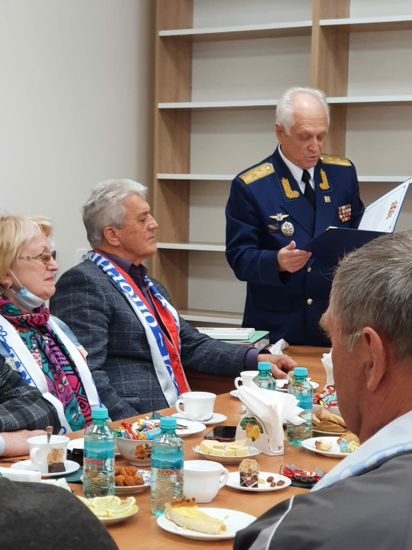 Наши председатели выступили перед ветеранами, провели личную беседу, обменялись материалами в рамках соглашения о сотрудничестве, а затем состоялся обмен подарками и памятными сувенирами.
