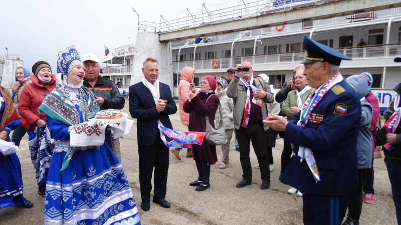 С радушием и гостеприимством, с народными песнями нас встречала Самара. На причале - председатель совета ветеранов Самарской областной организации Николай Петрович Хохлунов и первый заместитель председателя - Александр Георгиевич Антипов.