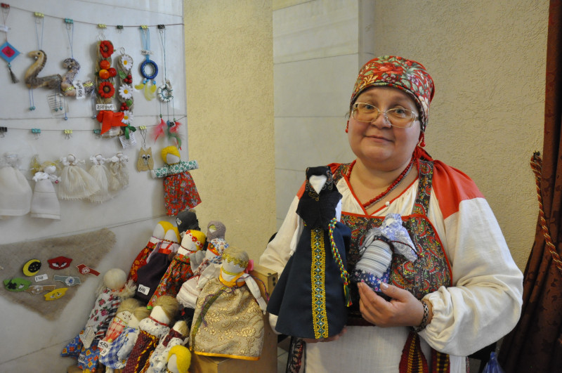 Татьяна Мымрина работает в одном из детско-подростковых клубов Екатеринбурга. Несколько лет она с ребятами изучала традиции и обычаи староверов. Сшили женский кержацкий костюм. На форуме она научила всех желающих делать из текстиля куклу-старообрядку.