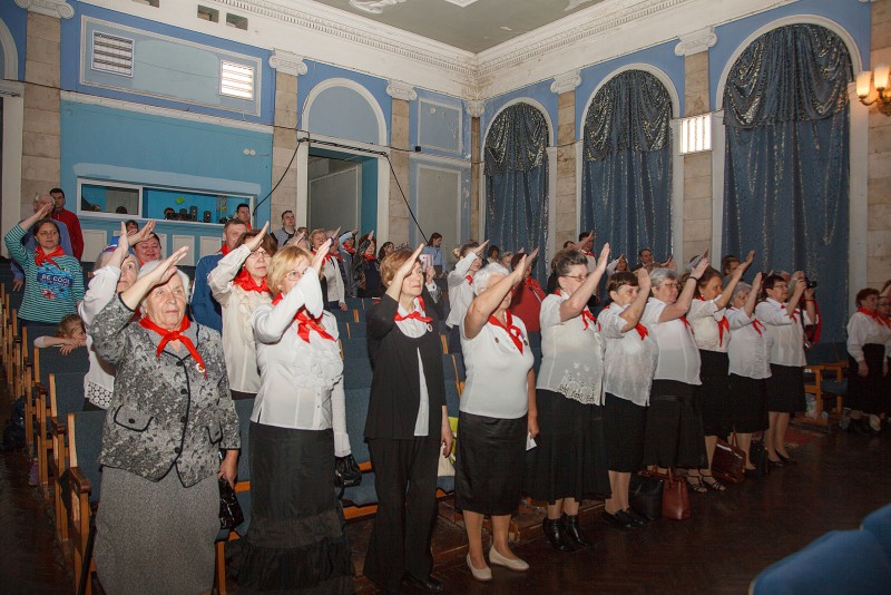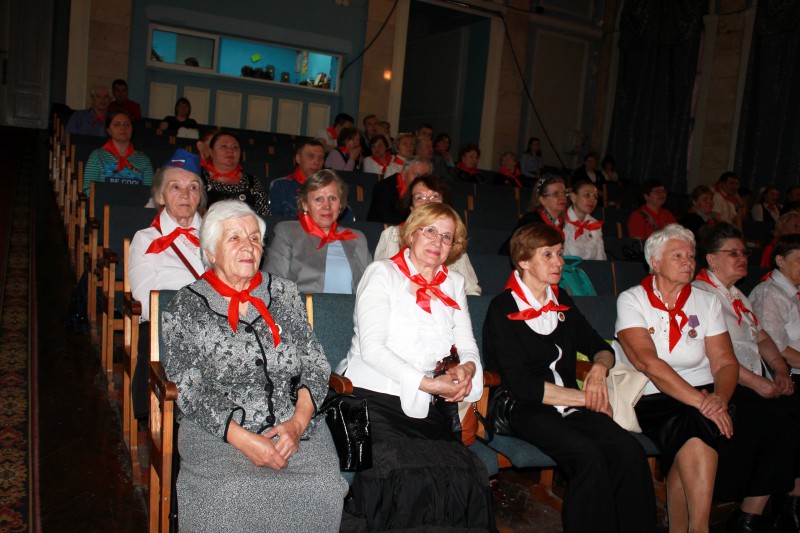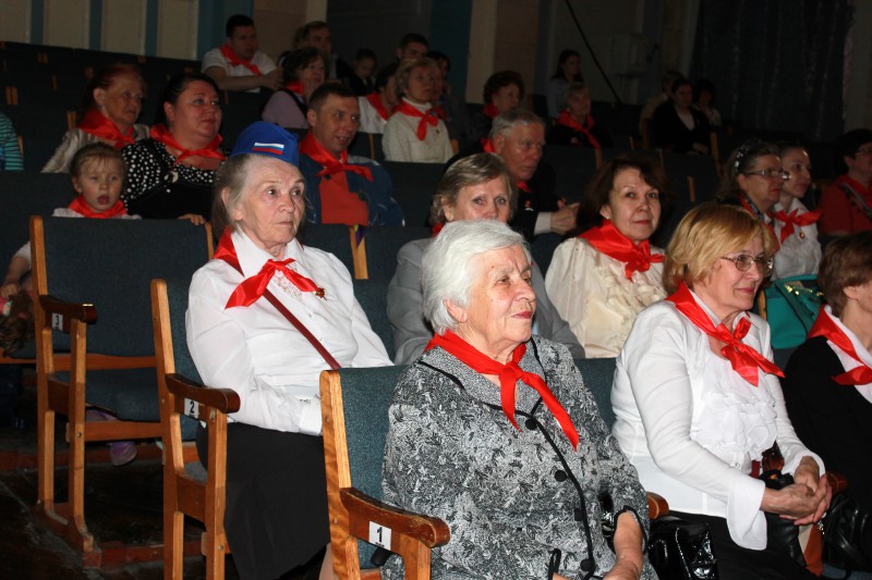 После радостных поздравление, песен под гитару, выступлений барабанщиков мне удалось пообщаться с двумя пенсионерками, сидевшими в зрительном зале. Галина Викторовна Храмова и Людмила Михайловна Коврижина когда-то были пионерскими работниками, помогали детям узнавать родной край, ходили с ними в походы, изучали геологию.