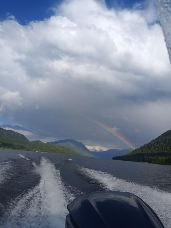 За свой небольшой отпуск я стала такой зоркой, что успевала заметить сусликов, юркающих в норку при приближении автобуса, в зеленом массиве различала особый вид берез с чуть более серой листвой, чем у прочих. И здорово сердилась на организаторов нашего путешествия за очень плотный график. Зачем по огромному, бездонному Телецкому озеру нас катали на катере на такой большой скорости, что и головы не высунуть? Впрочем, перебирая теперь в руках гальку, напоминающую крупные серые монеты, любуясь фотографией радуги, раскинувшейся над водой, когда мы сошли на берег, я знаю, что в следующий раз непременно окажусь на теплоходе, который дважды в день катает туристов по «алтайскому Байкалу».