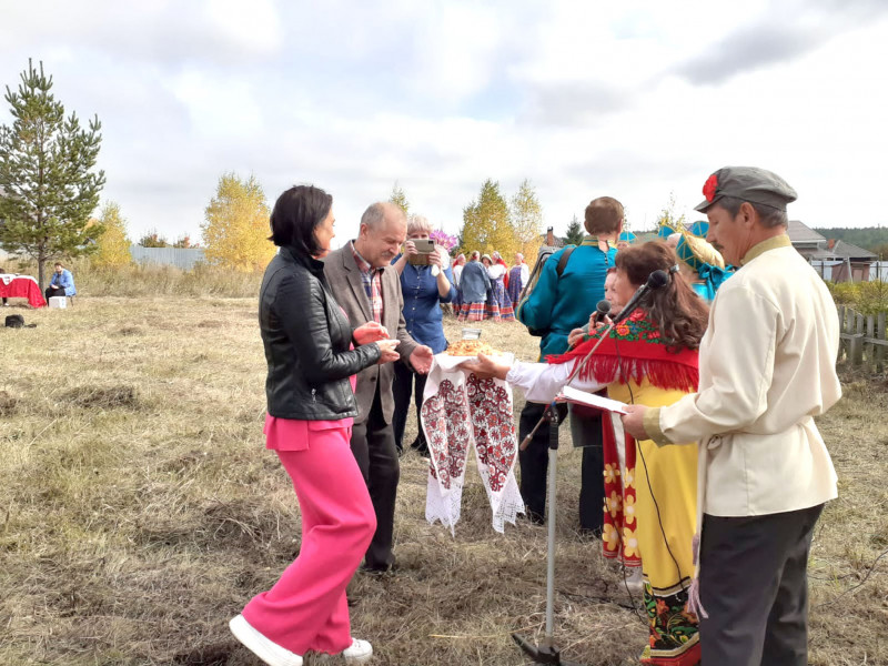 На праздник приехали гости из Екатеринбурга – сотрудники областной газеты «Пенсионер» Иван Шихов и Олеся Киданюк. Присутствовали здесь и депутат Режевской городской думы Марина Киселева, и начальник ТУ по селу Липовское Сергей Попов. Как водится на Руси, гостеприимные хозяева встретили гостей хлебом-солью.