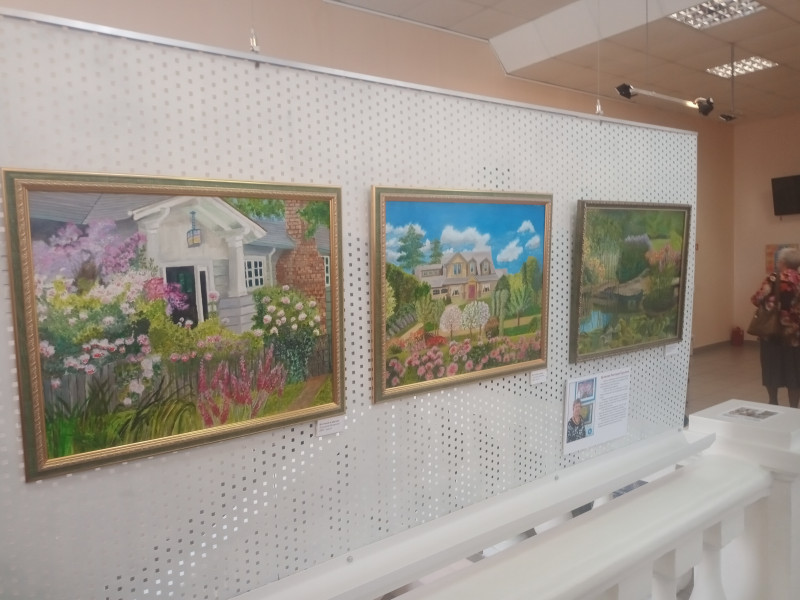 Рядом с каждым блоком работ сотрудники поместили информацию об авторах: всем им – больше 60 лет. Некоторые художники – «студенты» творческой студии «Родник жемчужин». Ее руководитель Наталья Николаевна Скакун занимается обучением разным художественным техникам больше 15 лет. «Для меня не имеет значения, есть ли у человека какой-то опыт. Я обучаю всех, – рассказывает она. – Занятия у меня платные, но цена невысока и обусловлена лишь необходимостью платить за аренду помещения».