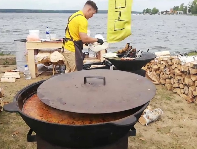 …Дровяной островок, огромный казан с медленно булькающим варевом из балтийской рыбы, гриль, на котором томятся большие креветки и маленькая хамса, а рядом – бар с рыбой и авторскими соусами: здесь колдуют повара из Калининграда. Смотреть на то, как аппетитно шипят, оплавляясь на огне, морепродукты, как наполняется хрустскостью и дымком каждое блюдо, можно часами, как на произведение искусства!