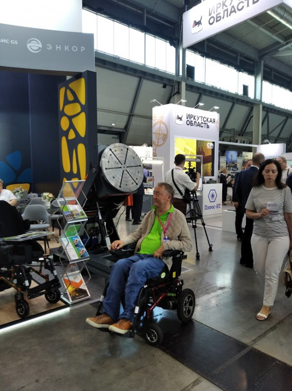 Крупные международные холдинги на выставке бок о бок соседствовали с небольшими производствами. Возле стенда калининградской компании Observer замечаю человека в инвалидной коляске. Он не просто передвигался в ней, а выполнял различные пируэты – повороты, вращения, замедляя и добавляя скорость. Коляска послушно выполняла все команды владельца, достаточно было легкого нажатия пальцем на кнопку в подлокотнике. Знакомимся. Человека в коляске зовут Роман Аранин. Он – руководитель калининградской общественной организации инвалидов «Ковчег» и одновременно генеральный директор компании, которая производит, разрабатывает и ремонтирует реабилитационную технику для инвалидов.