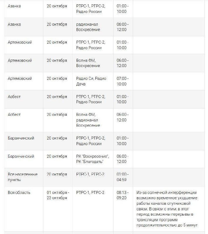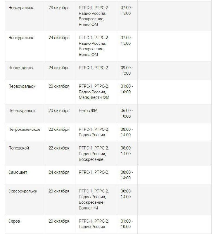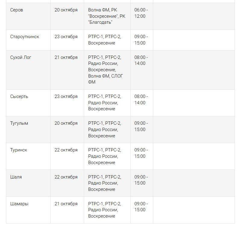 С 20 по 26 октября в Свердловской области будут проводиться плановые технические работы на объектах радиотелевизионной сети, что может привести к временному отсутствию телевизионного сигнала. Работы затронут трансляцию основных федеральных каналов, включая «Первый канал», «Россия 1», НТВ, «Россия 24» и другие популярные телеканалы.