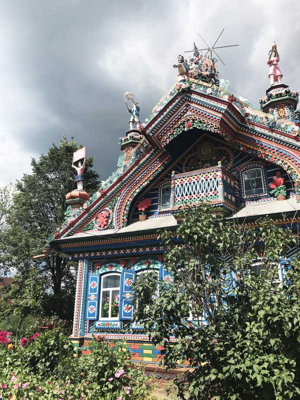 Дом удивительно красив: яркие на фасаде, чистые окна, выкрашенные в белоснежный цвет, в палисаднике сочные цветы и зелень, а фигурки на крыше – словно живые, рядом с основным домом – малаха – часть типичной крестьянской усадьбы, куда после свадьбы отселяли молодых. Позже это место стало для кузнеца отдельной мастерской. Словом, не дом, а игрушка. Как нам удалось узнать, домик радует глаз своей новизной – так как был капитально отреставрирован. Помощь вдове кузнеца Кириллова оказал Евгений Ройзман.