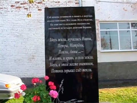 На открытии памятника присутствовала уполномоченный по правам человека по нашей области Татьяна Георгиевна Мерзлякова. Выступая на торжественном митинге, на котором присутствовали потомки людей, когда-то проживавших в спецбараках для поселенцев, на месте которых теперь стоит памятник, она отметила, что впервые в области увековечена память сельских тружеников – работяг, пострадавших за то, что благодаря своему труду и поту они жили в достатке. Трагедия состоит в том, что крестьяне пострадали от своих же – многие советские граждане полагали, что такими методами можно построить светлое будущее.
