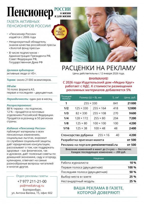 Для рекламодателей по газете «Пенсионер России»