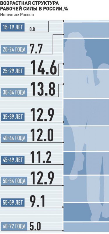 С другой стороны, встает вопрос об обострении конкуренции опытных зрелых людей и креативной, но бесшабашной молодежи. Повышение пенсионного возраста не должно серьезно повлиять на показатели безработицы, считает глава минтруда Максим Топилин. Работники старших возрастов и молодежь занимают разные ниши на рынке труда: молодые охотнее занимаются информационными технологиями, идут в бизнес, финансовую сферу, открывают собственное дело. Старшее поколение занято в основном в традиционных отраслях и бюджетной сфере. «Мы исходим из того, что в связи с повышением пенсионного возраста серьезных изменений показателей безработицы не будет», - сказал министр.