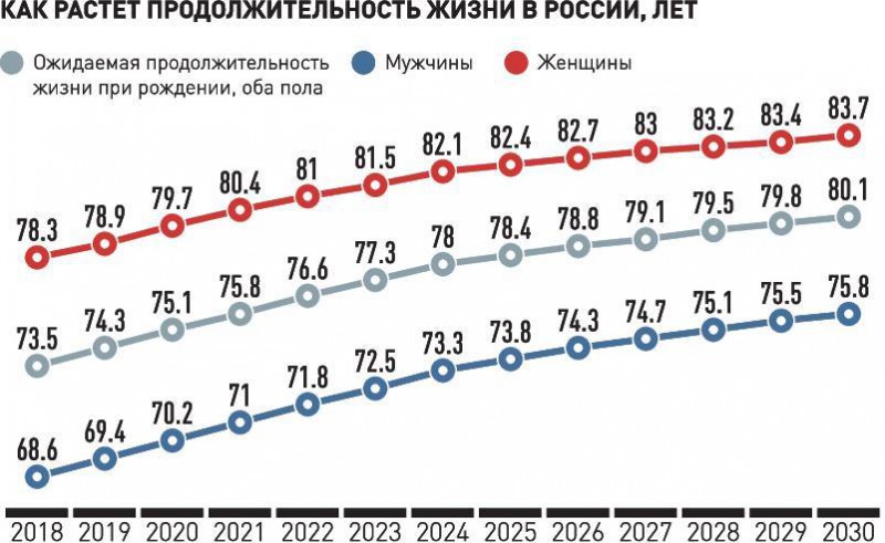 К 2024 году сильный пол будет жить в среднем 72,3 года, а женщины и вовсе 82 с лишним.
